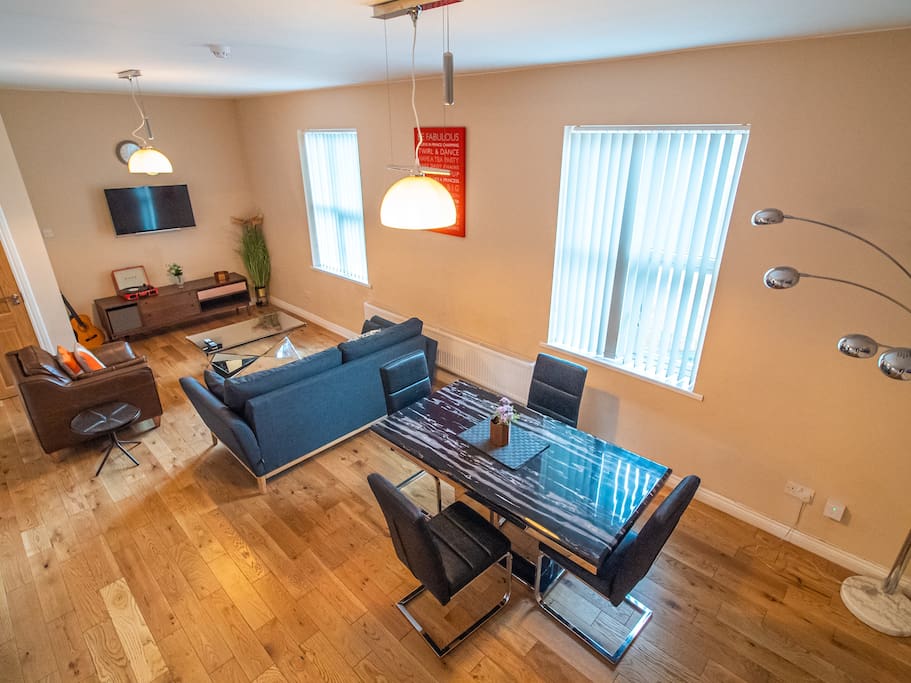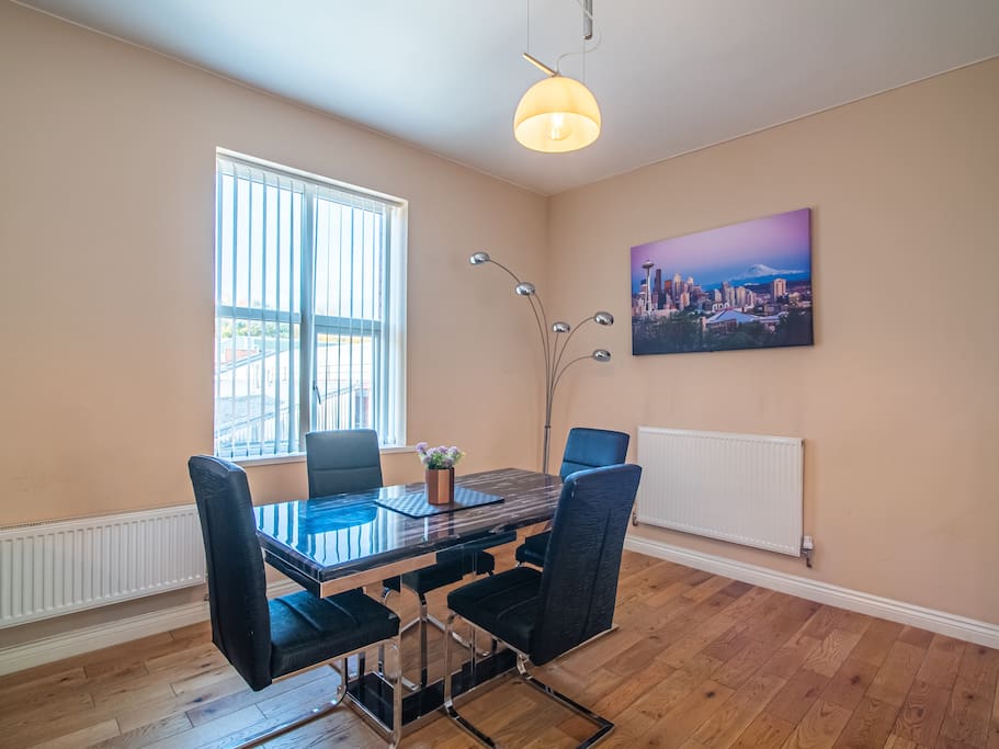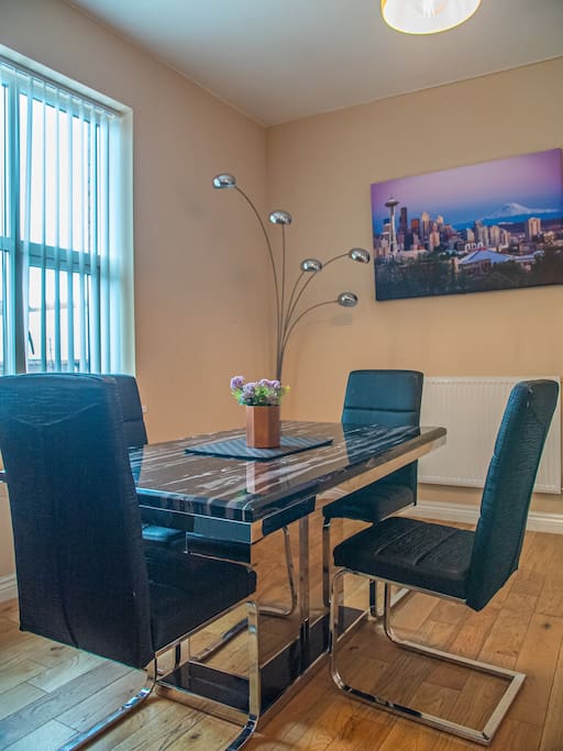 Sheffield hub is a stylish central apartment is situated in the city of Sheffield. Consisting of one double bedroom with double size bed and a large living a dining area and a private balcony. A heavy marble dining table which is perfect for eating, working and entertaining with family & friends. A separate kitchen with a ceramic electric hub and fridge freezer. This modern apartment offers a perfect stay for contractors, couples, families or friends looking for quiet accommodation.
