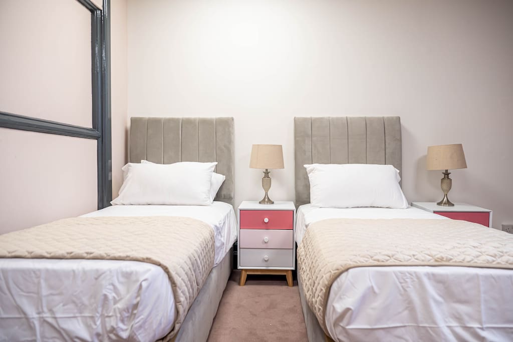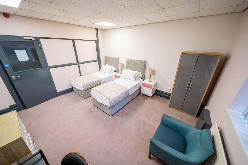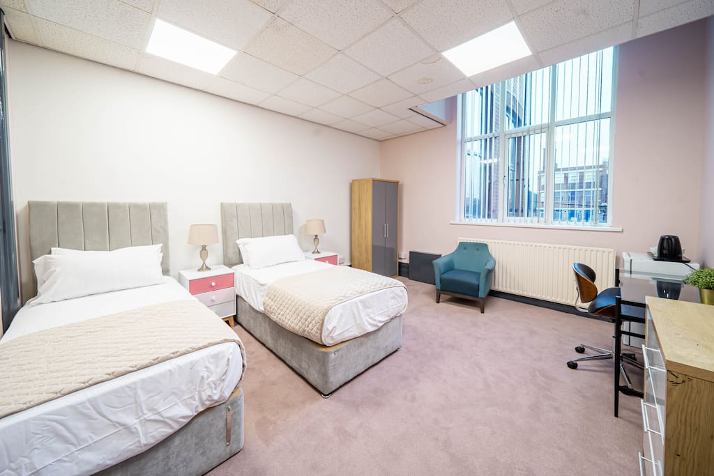 Discover comfort at Bessemer House! Our roomy bedroom, ideal for contractors or couples, features two single beds that transform into a king-size. Enjoy the spaciousness, private toilet, and the convenience of a central Sheffield location. Perfect for any length of stay, it's your cozy home away from home! The whole group will enjoy easy access to everything from this centrally located place.