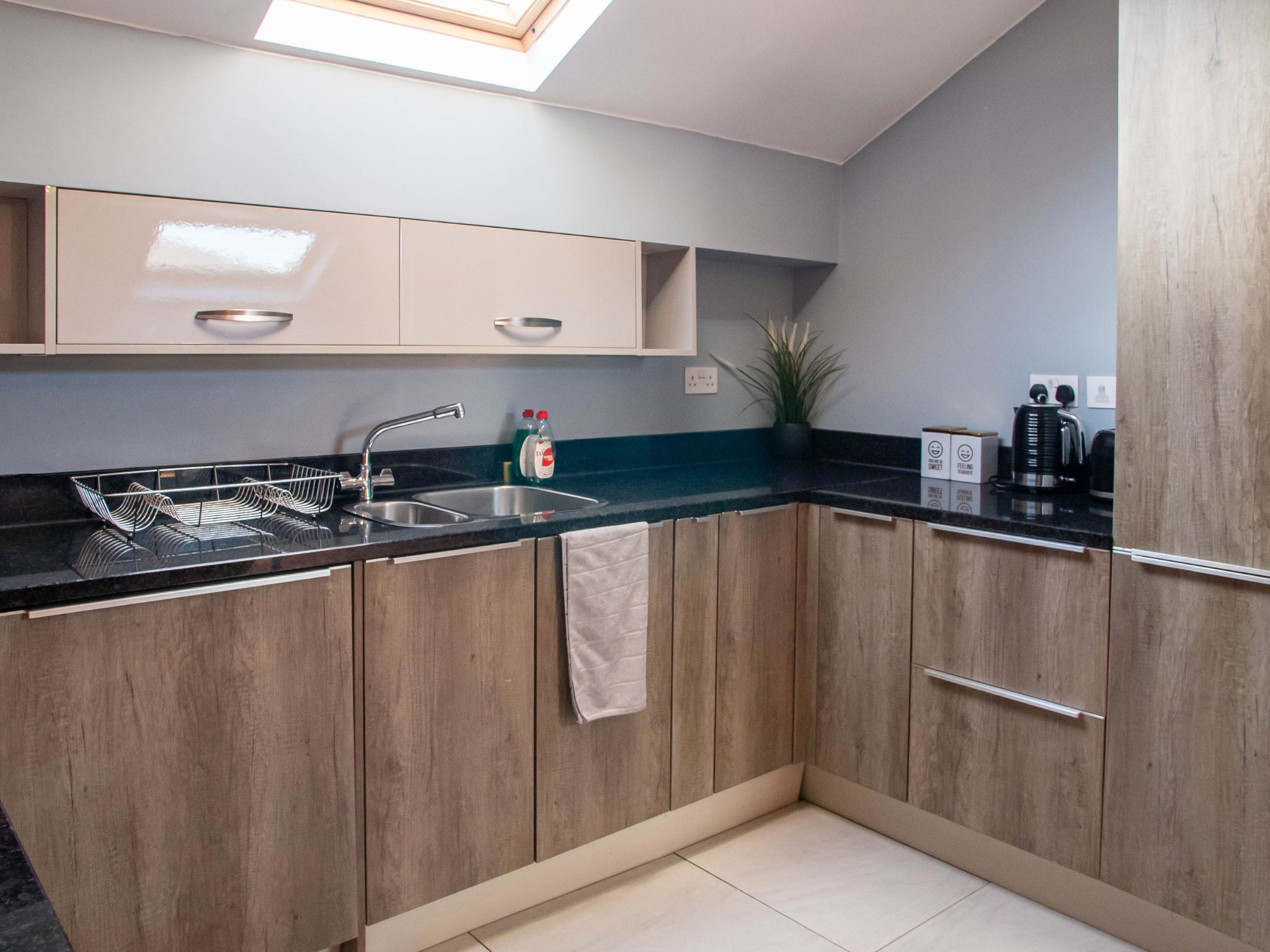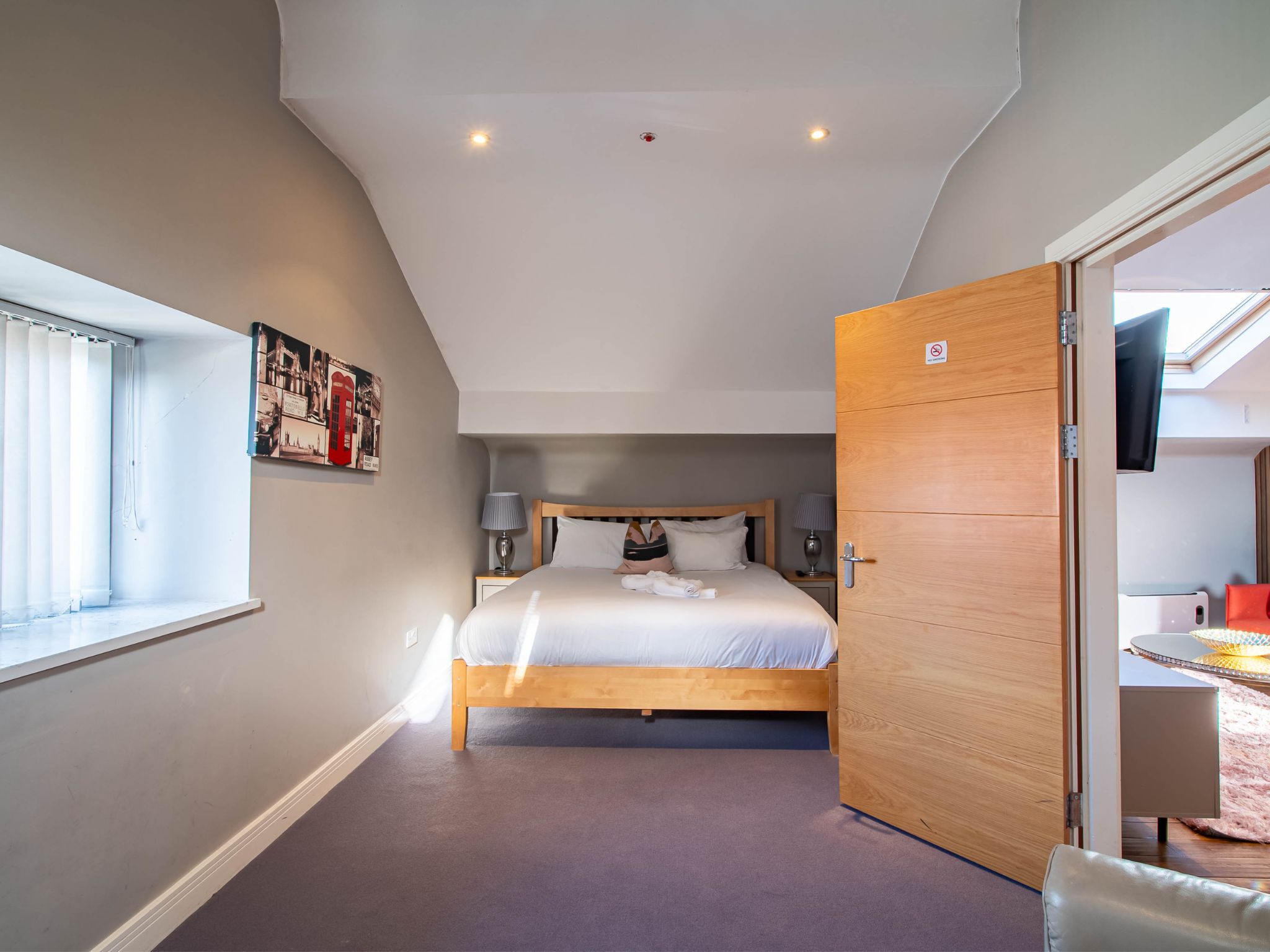 Say hello to your new favourite base in the city — a warm, stylish apartment with a personality of its own. Tucked beneath skylights and dressed in rich wood tones, bold colours, and soft lighting, this 1-bedroom gem feels like a boutique stay without the hotel fuss. She's modern, a little playful, and always camera-ready (yes, those angles are real). Perfect for city explorers, remote workers, or couples needing a break from routine. Bright, bold, and full of charm — this apartment features a statement red sofa, modern wood panelling, and skylights that flood the space with natural light. Kick back, fire up Netflix on the Smart TV, or simply soak in the atmosphere. Whether you’re here to chill, recharge, or get a little work done, this space nails the vibe.