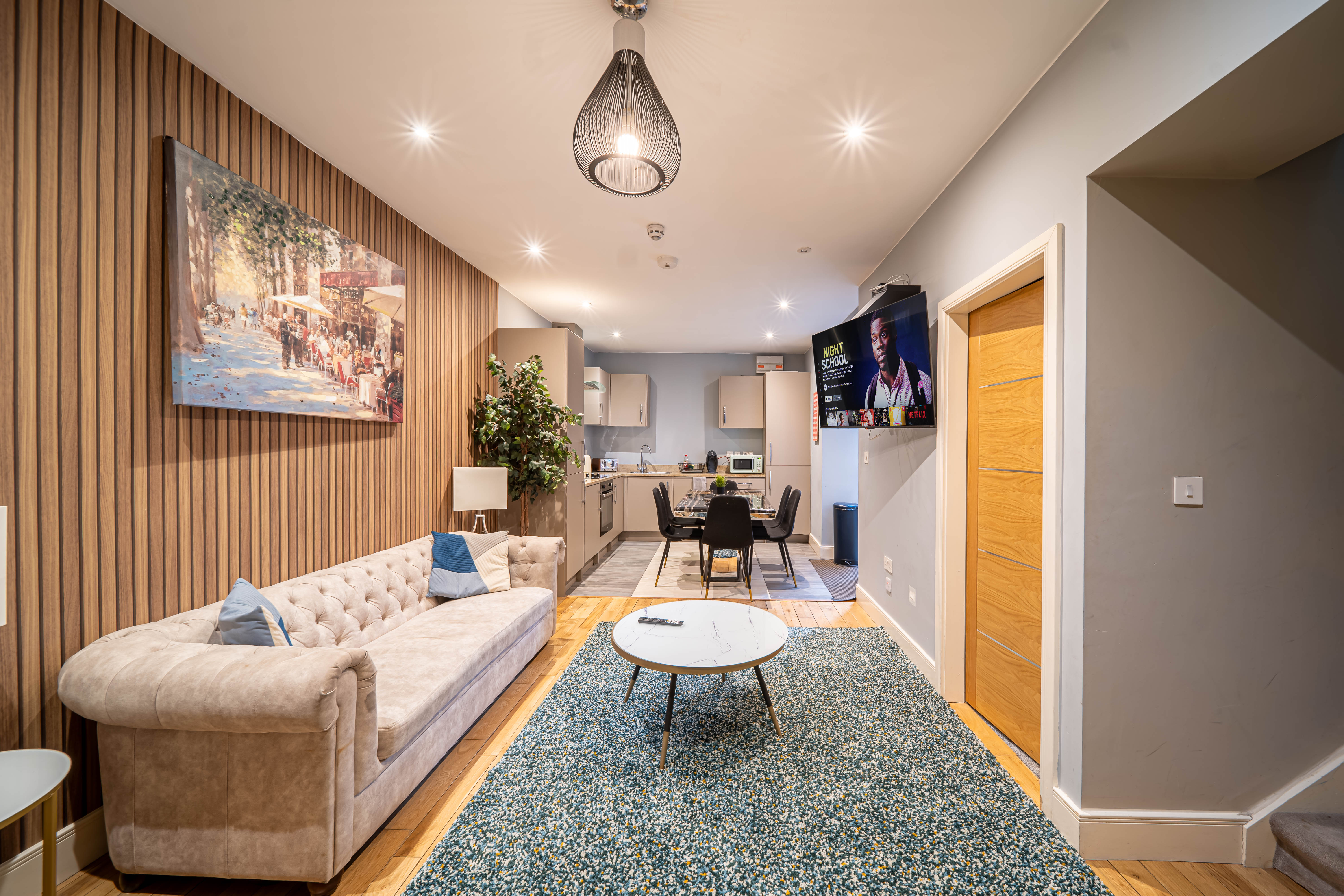 This massive 4 bed apartment is Ideal for families, contractors or groups, The Apartment in walking distance to the city center and provides a perfect blend of space, luxury and privacy. A fully equipped open plan kitchen featuring an oven, cooktop, full-size fridge, and dining table with 6 chairs means meals can be prepared and enjoyed in the apartment. NO gatherings allowed at this time.