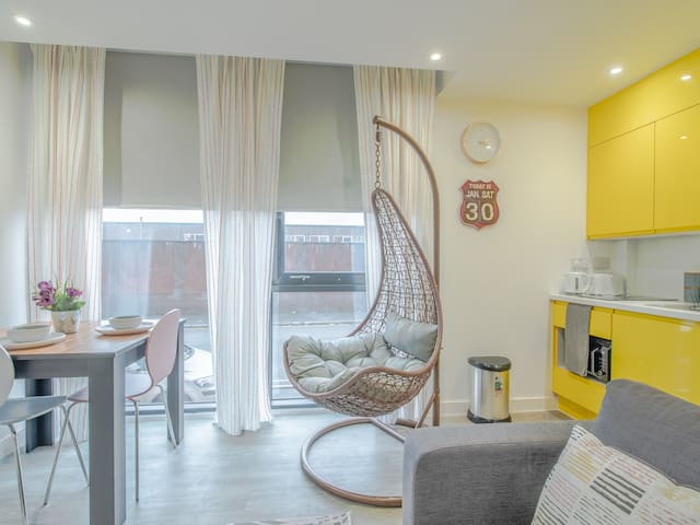 Staying in this apartment keeps you at the center of Sheffield and very close to the train station, restaurants, shops and supermarkets. This particular apartment benefits from floor to ceiling windows. You’ll love our apartment because of the fully equipped kitchen, the bathroom, the views, the location and the cosiness. Our place is good for couples, solo adventurers, business travellers, and families.